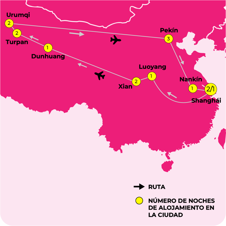 SHANGÁI, LUOYANG, XIAN, DUNHUANG, TURPAN, URUMQI, PEKÍN, NANKÍN