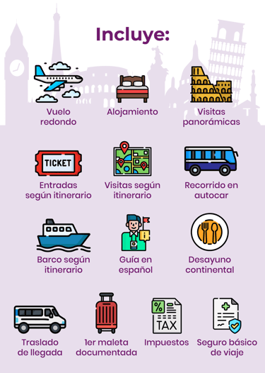 *Precio DESDE por persona en ocupación doble, cotizado en dólares americanos pagaderos a Moneda Nacional Mexicana al tipo de cambio del día de la compra, en las salidas mencionadas. SALIENDO DE CIUDAD DE MÉXICO. El precio es informativo, el cual no se garantiza hasta tener una reserva confirmada. TARIFAS Y PROMOCIONES SUJETAS A DISPONIBILIDAD Y CAMBIO SIN PREVIO AVISO. Consulta términos y condiciones.