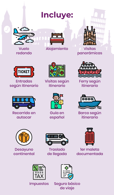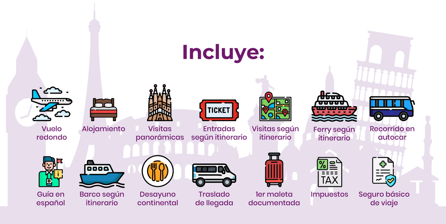 *Consulta términos y condiciones con tu agente de viajes. El apartado puede variar dependiendo la fecha de tu viaje.