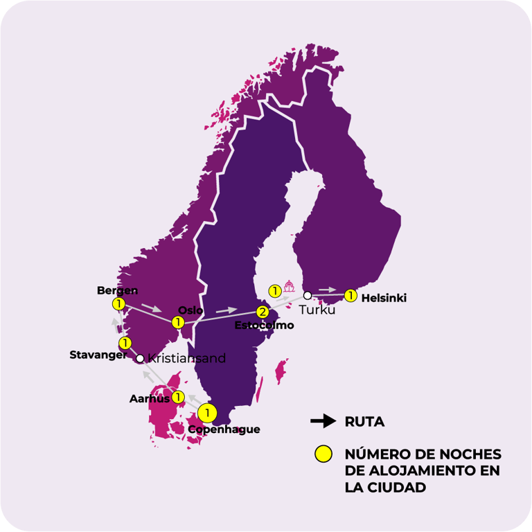 COPENHAGUE, AARHUS, STAVANGER, BERGEN, OSLO, ESTOCOLMO, FERRI ESTOCOLMO-TURKU, HELSINKI
