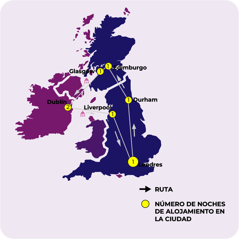 LONDRES, DURHAM, EDIMBURGO, GLASGOW, DUBLÍN, LIVERPOOL, LONDRES