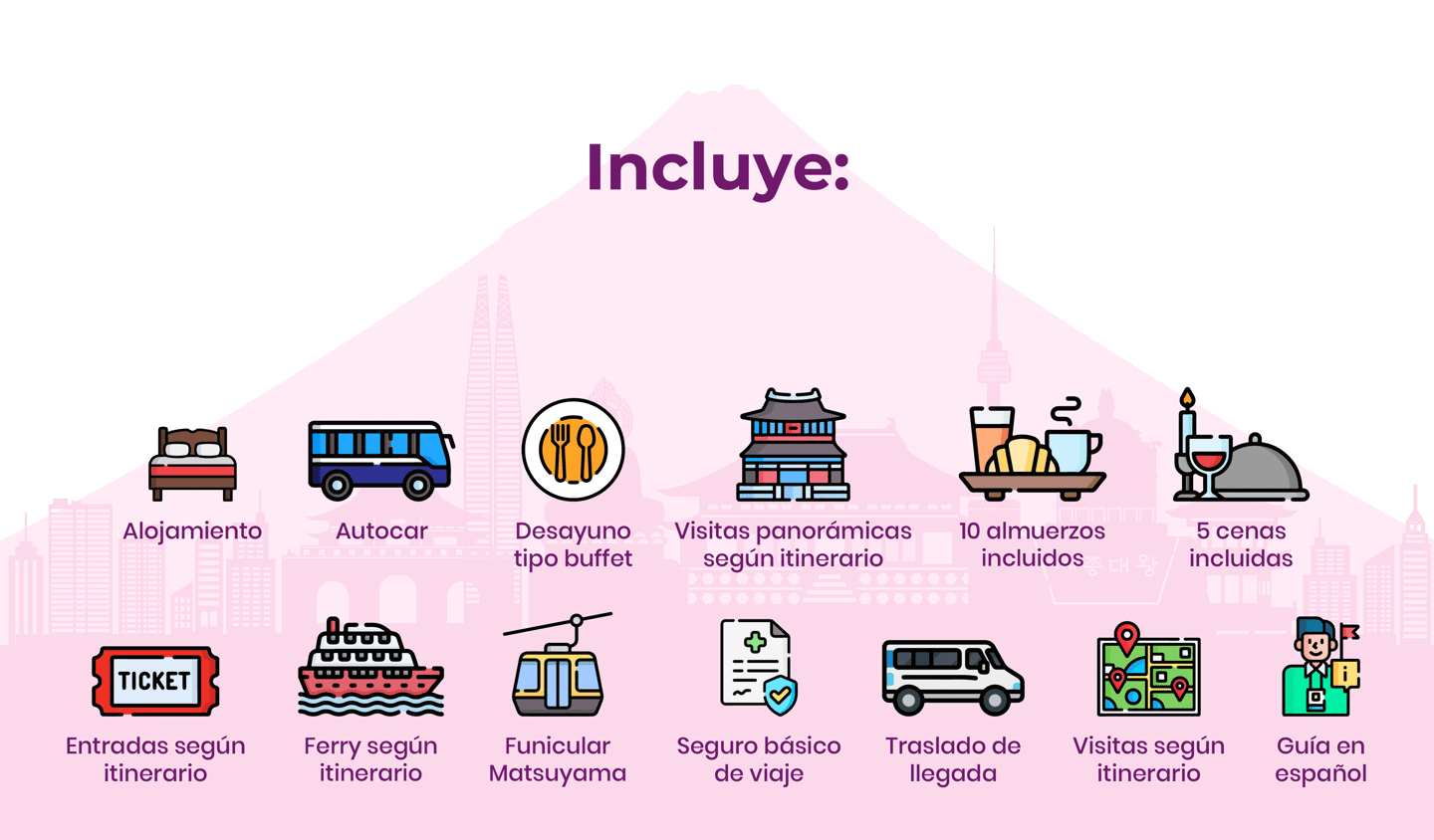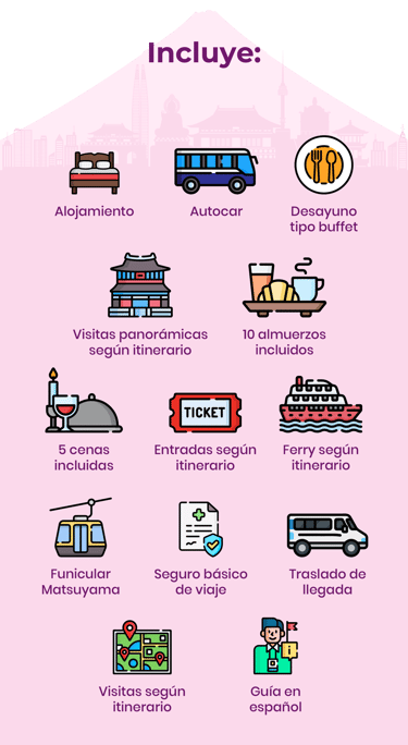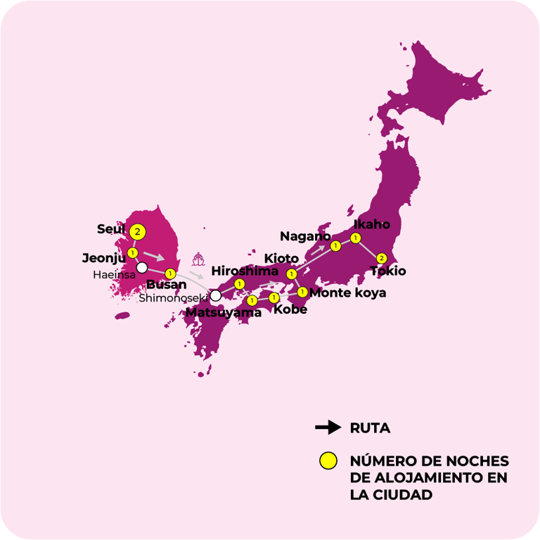 SEÚL, JEONJU, BUSAN, FERRI BUSAN, SHIMONOSEKI, HIROSHIMA, MATSUYAMA, KOBE, MONTE KOYA, KIOTO, NAGANO, IKAHO, TOKIO