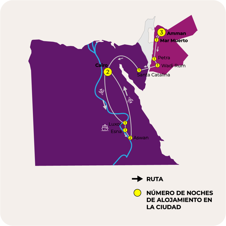 AMMAN, MAR MUERTO, PETRA, WADI RUM, SANTA CATALINA, EL CAIRO, LUXOR, ESNA, ASWAN, EL CAIRO