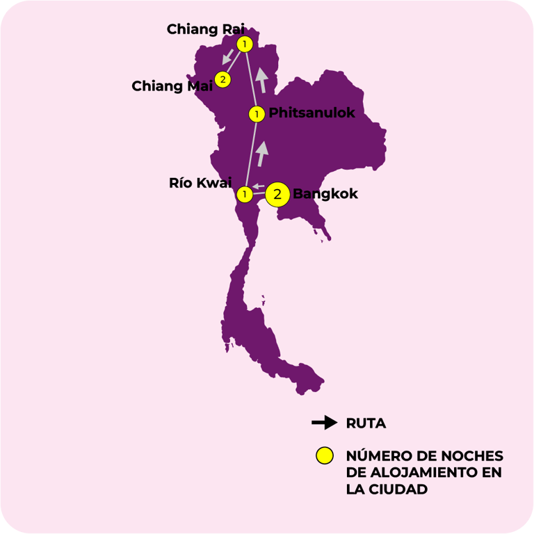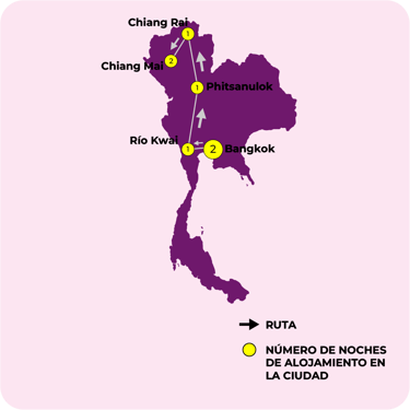 BANGKOK, RIO KWAI, PHITSANULOK, CHIANG RAI, CHIANG MAI